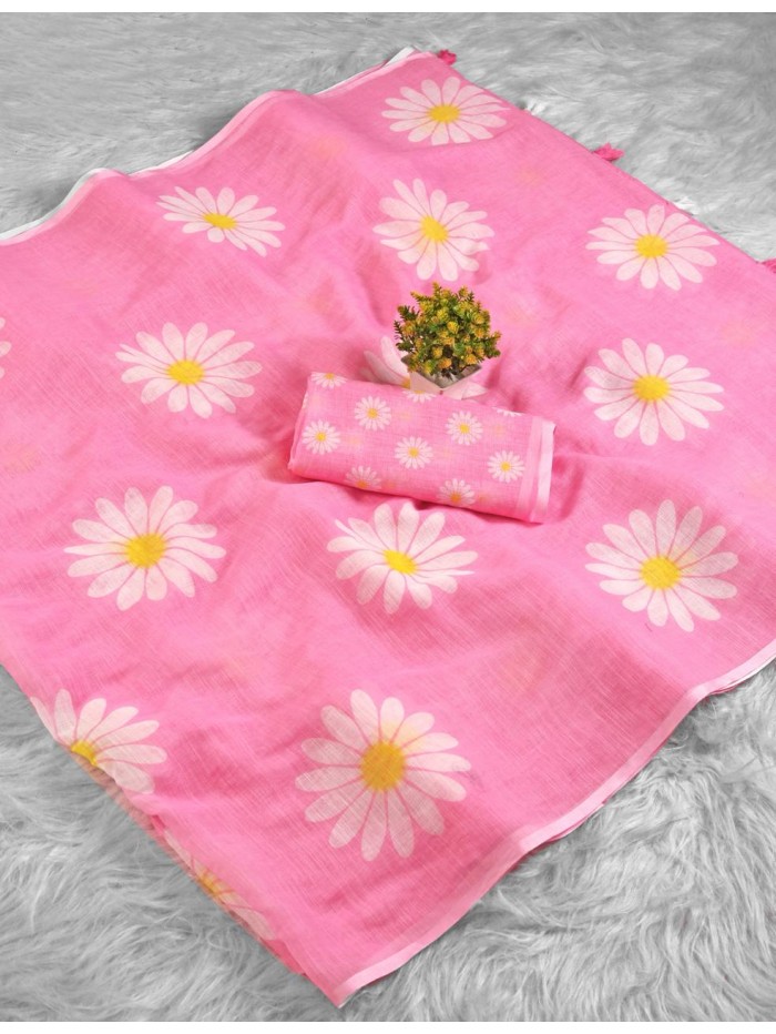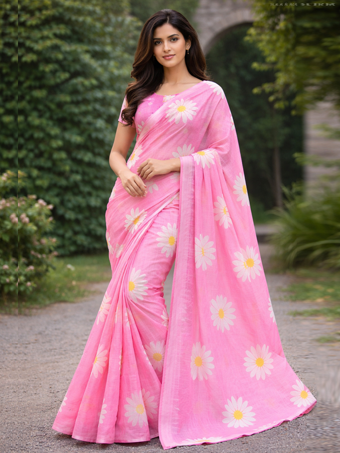 lightweight, breathable fabric, it offers a graceful drape perfect for summer events and festive occasions. The pastel hue paired with modern floral patterns makes it a standout choice for elegant daywear. A perfect blend of ethnic fashion, minimal style, and contemporary charm.
